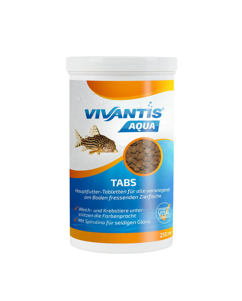 Der VIVANTIS-VITAL-Complex steht für ausgesuchte Rohstoffe und eine speziell auf die Ernährungsbedürfnisse von Aquarienfischen abgestimmte Kombination aller wichtigen Nährstoffe – für die Vitalität Ihrer Fische. Dies macht VIVANTIS Tabs zu einem qualitativ hochwertigen Tablettenfutter für Schmerlen, Welse und andere vorwiegend am Boden fressenden Zierfische.VIVANTIS Tabs stehen für: