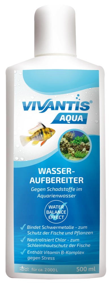 VIVANTIS Wasseraufbereiter bindet Schadstoffe im Leitungswasser und wird bei jedem Wasserwechsel und bei Neueinrichtungen angewendet. Durch die regelmäßige Anwendung sind die Schleimhäute der Fische optimal geschützt. Schädliches Chlor und Schwermetalle im Leitungswasser werden gebunden. Der Vitamin B-Komplex reduziert die Stressanfälligkeit aller Aquarienbewohner. Für das biologische Gleichgewicht wichtige Mikroorganismen werden aktiv unterstützt. Eine optimale Wirkung wird mit der kombinierten Anwendung von VIVANTIS Reinigungsbakterien erzielt.