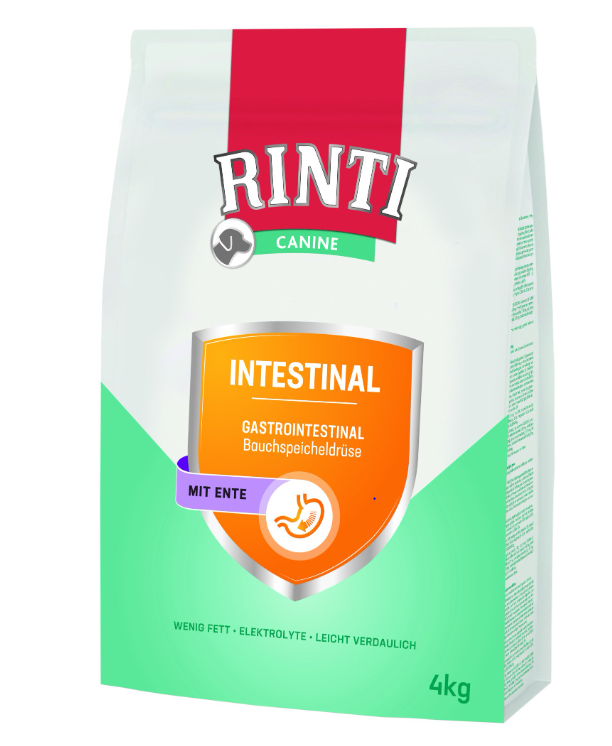 Rinti Canine - INTESTINAL wurde für Hunde mit gastrointestinalen Problemen (Magen-Darm / Bauchspeicheldrüse) entwickelt. Dieses Diätfuttermittel hat einen niedrigen Fettgehalt in einer besonders leicht verdaulichen Zusammensetzung sowie einen erhöhten Elektrolytgehalt.- wenig Fett