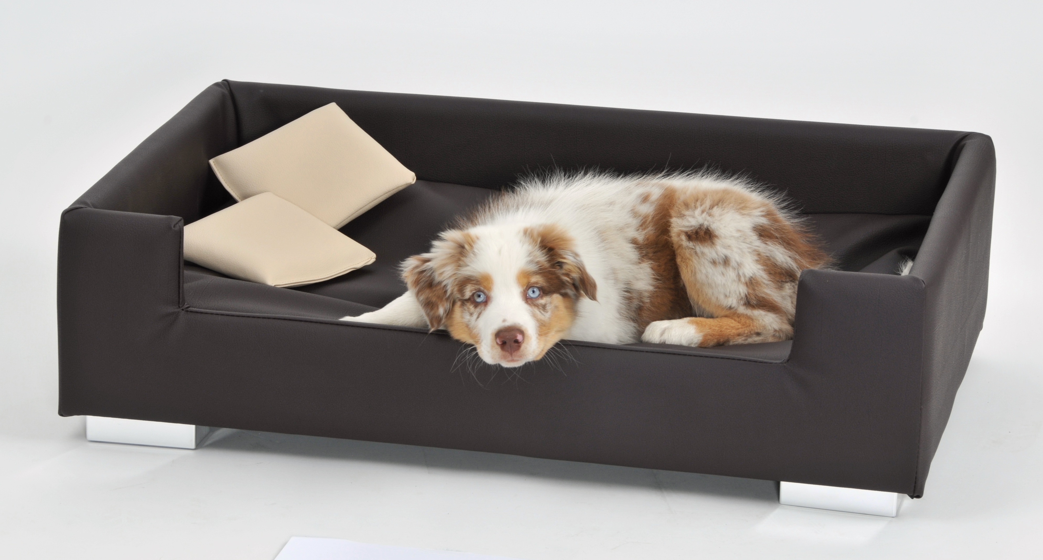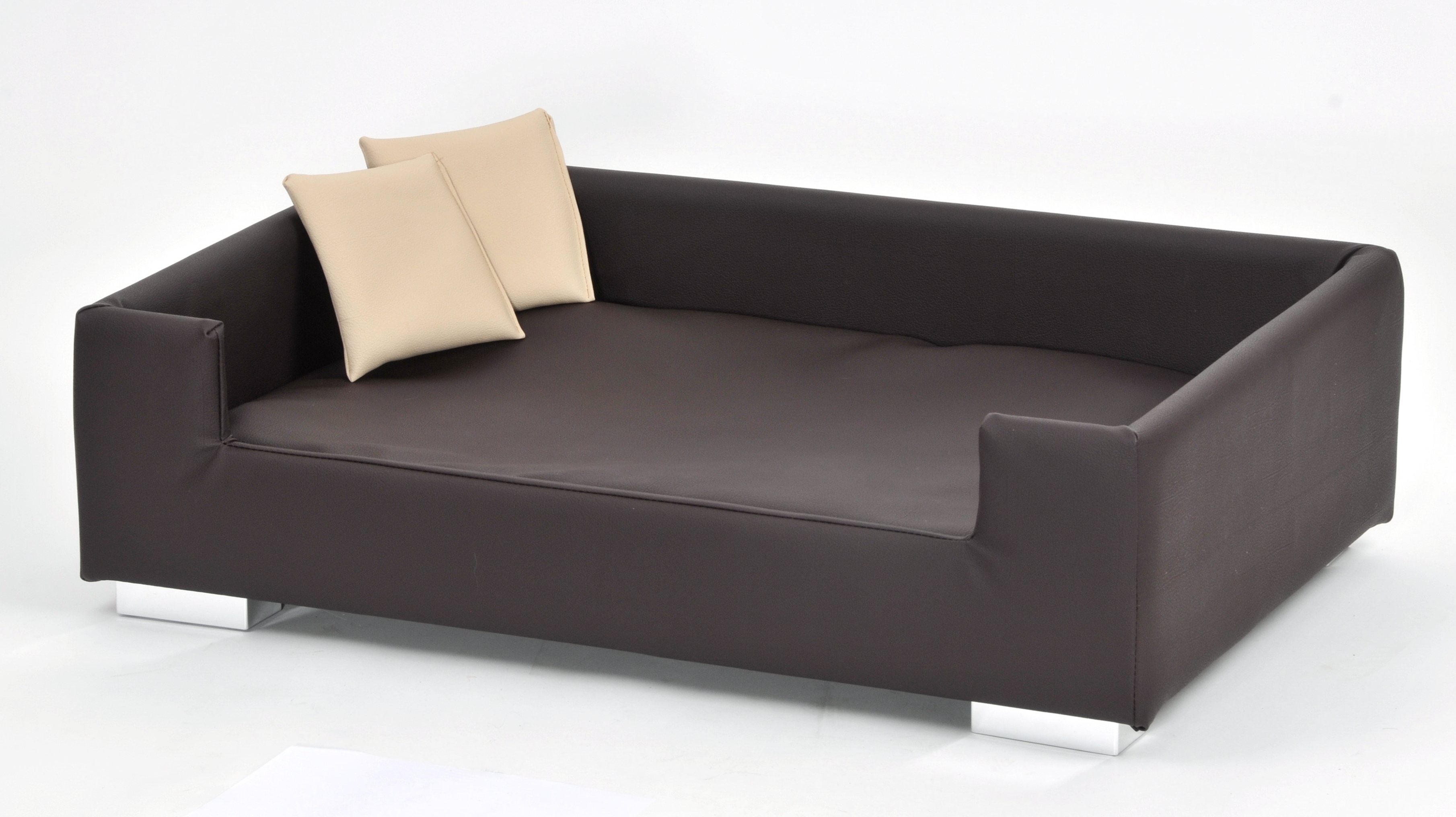 Das stilvolle Hundesofa in warmem Braun bietet deinem Hund einen komfortablen und geschützten Ruheplatz. Mit drei kleinen Rändern für Sicherheit und einem reduzierten Einstieg vorne kann dein Hund bequem ein- und aussteigen. Die beige Kissen sorgen für eine harmonische Farbkombination und zusätzlichen Komfort. Kleine Füße heben das Bett vom Boden ab und ermöglichen eine optimale Luftzirkulation.Tierart: Hunde