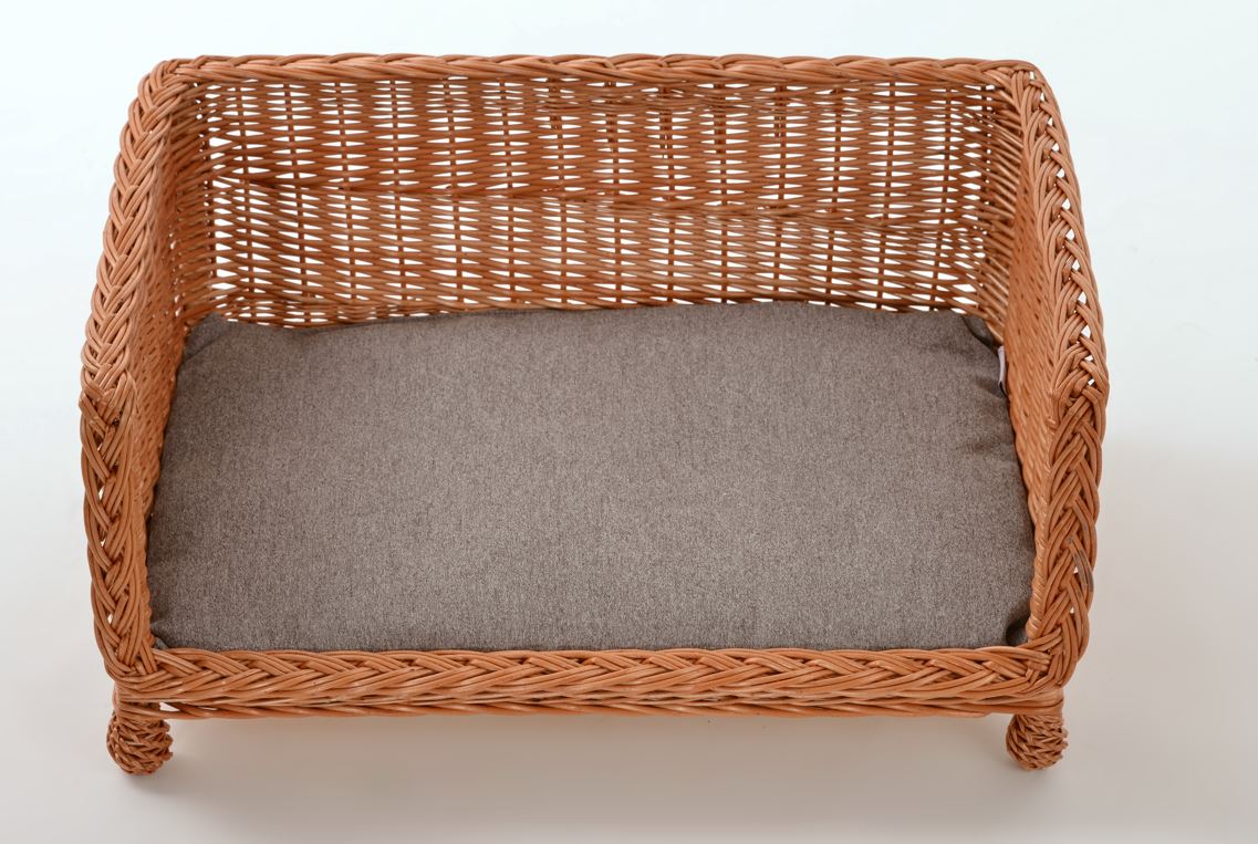 Natur pur - Ruhekorb aus Weidegeflecht mit weichem Kissen. Der hohe Rand bei diesem Tiersofa vermittelt Geborgenheit und Schutz. Auf dem weichen Kissen, das herausgenommen und per Hand gewaschen werden kann, lässt es sich herrlich relaxen. Die vier fest eingearbeiteten Füße sorgen für eine gute Luftzirkulation und halten die Bodenkälte fern. Ein rundum gelungener Hundeschlafplatz ideal für Ihren Hund.