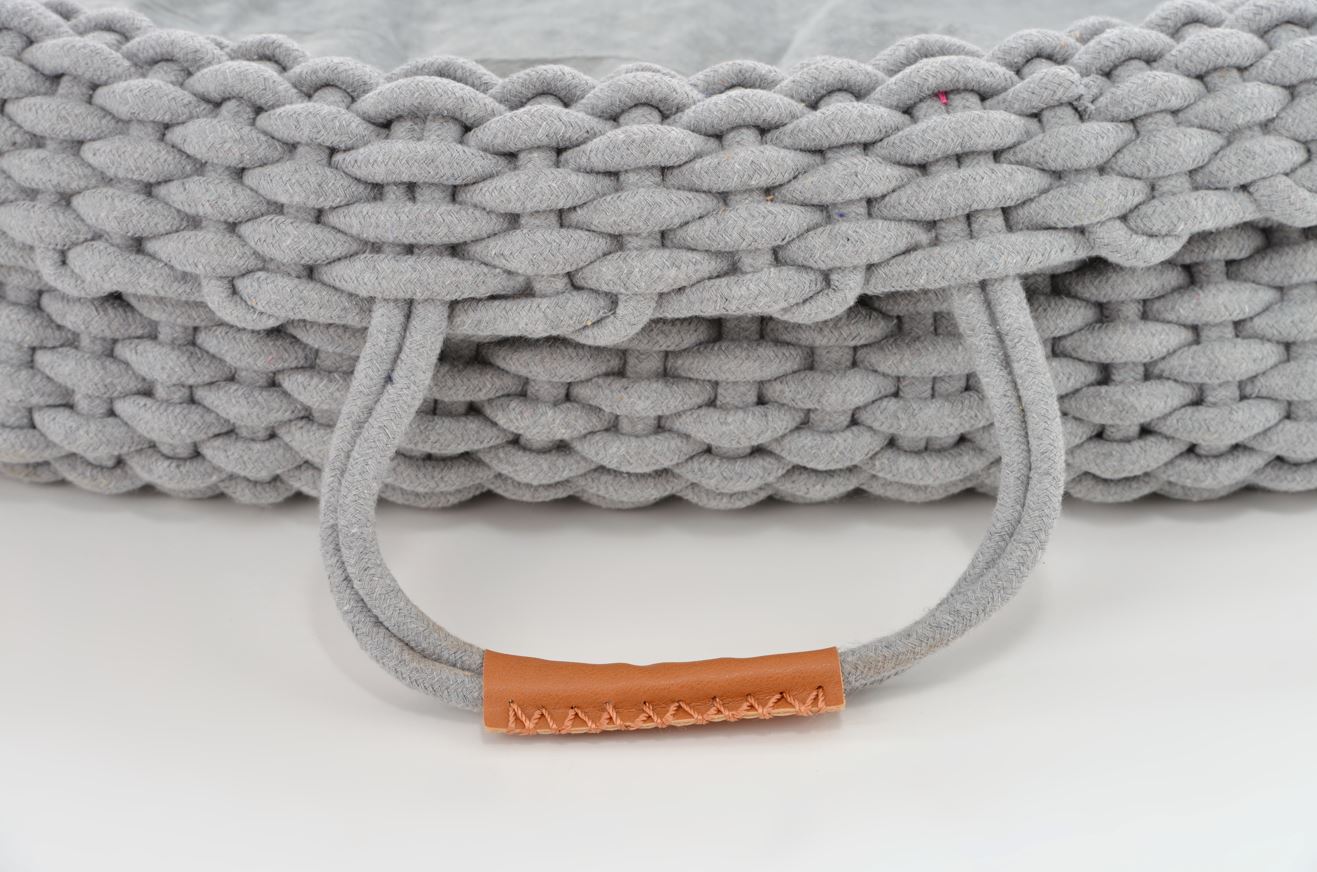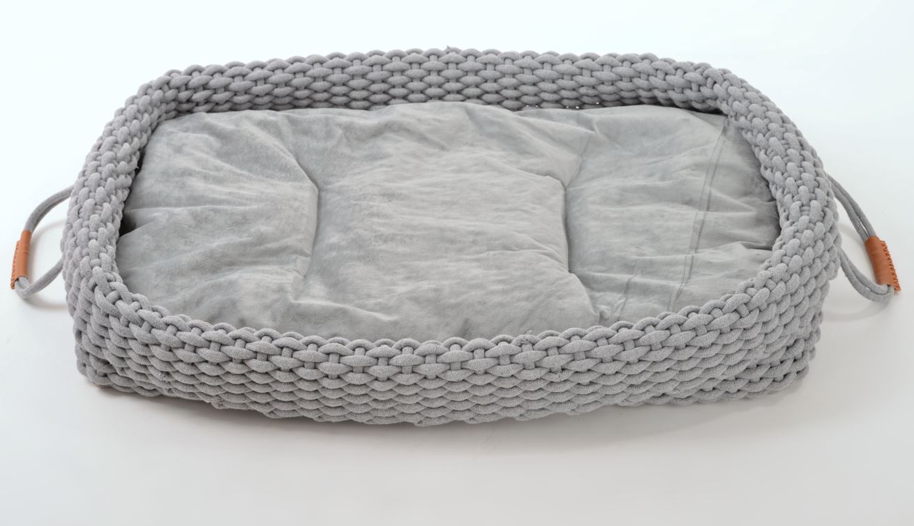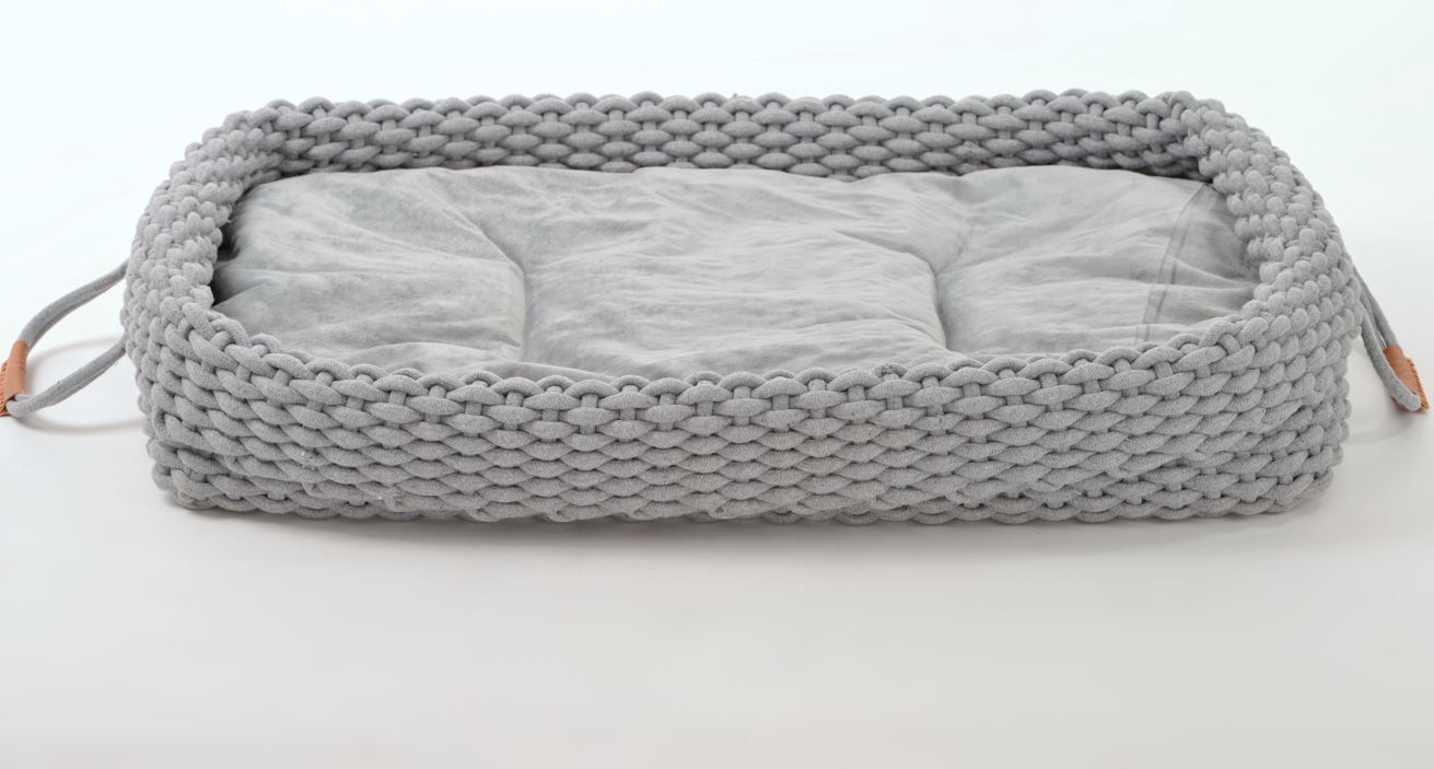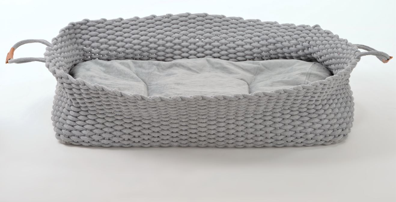 Gemütliches Kuschelbett aus Stoffgeflecht in grau