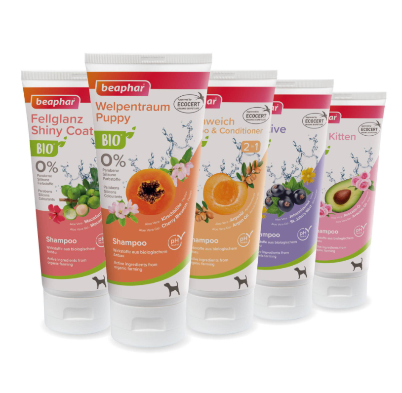 Das beaphar Shampoo Welpentraum enthält Aloe Vera aus biologischem Anbau, die der Haut Feuchtigkeit spendet und für ein weiches Fell sorgt. Das Ecocert Siegel garantiert die natürliche Herkunft der verwendeten Inhaltsstoffe. Das Shampoo, angereichert mit Kirschblüten und Papaya, pflegt und schützt das Fell. Der neutrale pH-Wert des Shampoos schont dabei die natürliche Fellbeschaffenheit Ihres Welpen.- Pflegt und schützt das Fell von Welpen