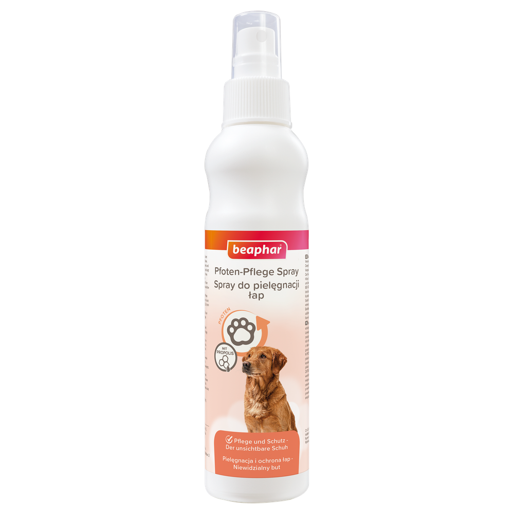 Tipp: Besonders im Winter, aber auch das ganze Jahr über sind Hundepfoten Gefahren wie Eis und Schnee, Schotter, Streusalz, Benzin und Ölreste etc. ausgeliefert. Bei regelmäßiger Anwendung schützt Beaphar Pfoten-Pflege Spray mit der Kraft von natürlichem Propolis vor Problemen, die durch solche äußeren Einflüsse entstehen können.
