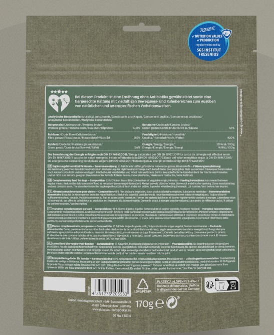 DOKAS Hühnerbrust getrocknet für Hunde 11 x 170 g - Für mehr Tierwohl!