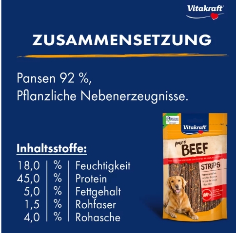 TIRIXIE Vitakraft pure Beef Strips - mit Pansen