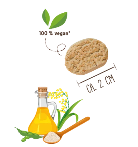 Knusprig gebackene, vegane Snackies aus gelber Hirse, Leinsamen und Flohsamen. Schonend gebacken, liefern sie wertvolle Spurenelemente und Vitamine und eignen sich für ausgewachsene, sensible Hunde.Tierart: Hund