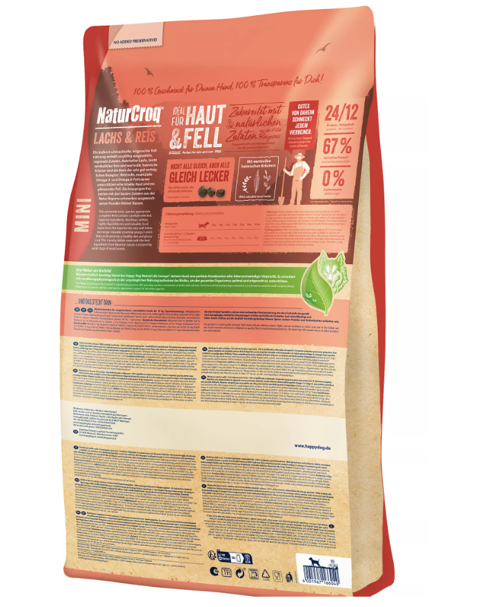 HAPPY DOG NaturCroq Lachs, Reis 800 g – ausgewogen für kleine Hunde