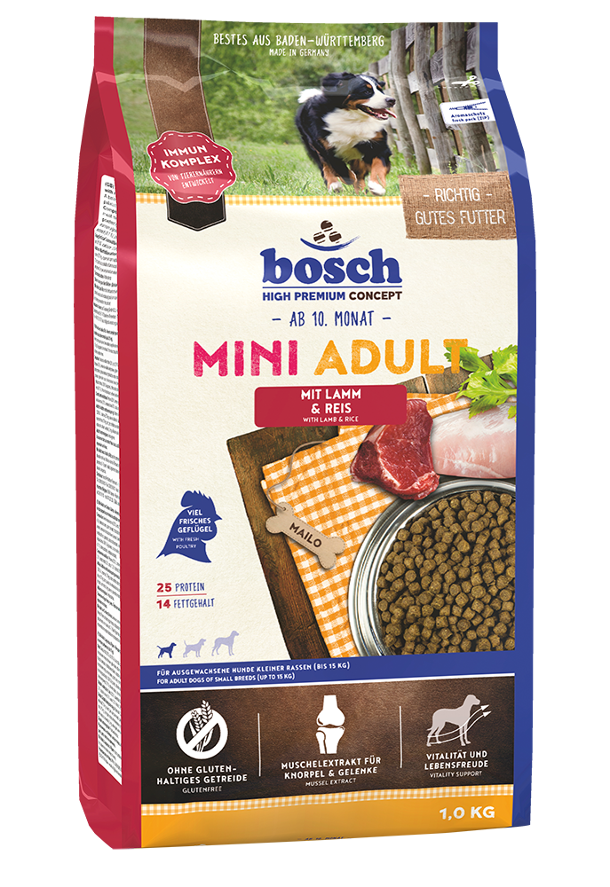 MINI ADULT mit LAMM & REIS wurde speziell für ausgewachsene Hunde kleiner Rassen (bis 15 kg Endgewicht) entwickelt, die häufig sehr wählerisch sind. MINI ADULT mit LAMM & REIS ist besonders für ernährungssensible Hunde geeignet, da es ohne glutenhaltiges Getreide hergestellt wird und neben frischem Geflügel (min. 25 %) Lammfleischmehl mit geringem allergenem Potential enthält. Durch den Einsatz unseres Immun-Komplexes aus Mannanen & Glucanen wird die Darmflora stabilisiert, sowie das Immunsystem gestärkt.- ohne glutenhaltiges Getreide
