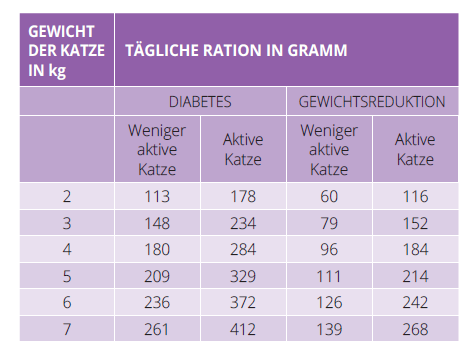 Empfohlene Fütterungsdauer: Bei Diabetes mellitus zunächst bis zu 6 Monaten, bei Übergewicht bis zum Erreichen des angestrebten Körpergewichts. Es wird empfohlen, vor der Verwendung den Rat eines Tierarztes einzuholen.