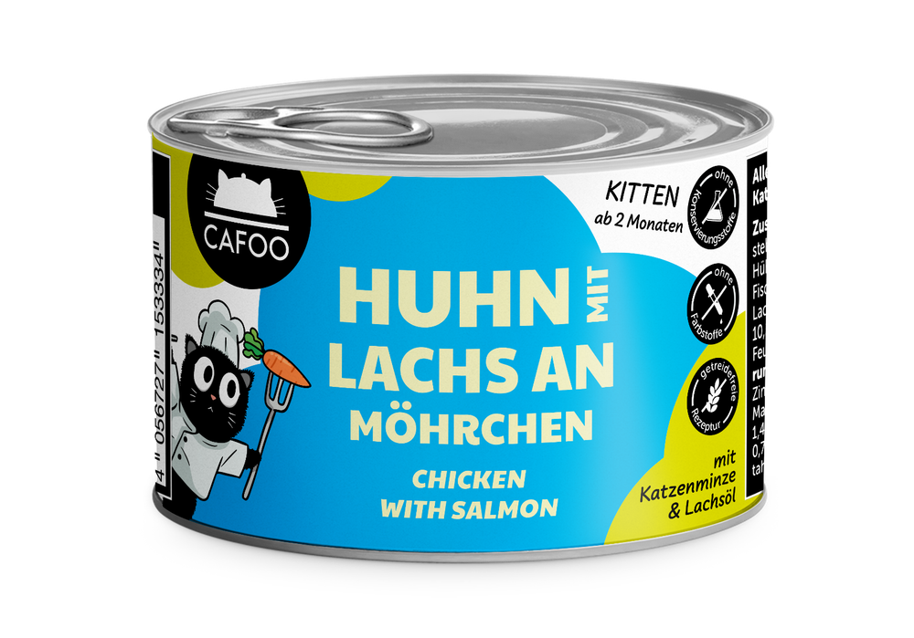 Ihre Vorteile mit CAFOO Kitten Huhn & Lachs an Möhrchen