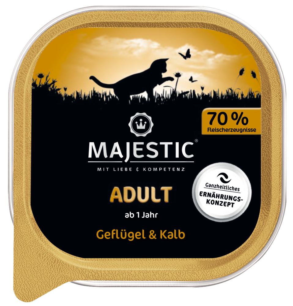 MAJESTIC ist eine vollwertige Hauptmahlzeit mit 70% Fleischerzeugnissen.