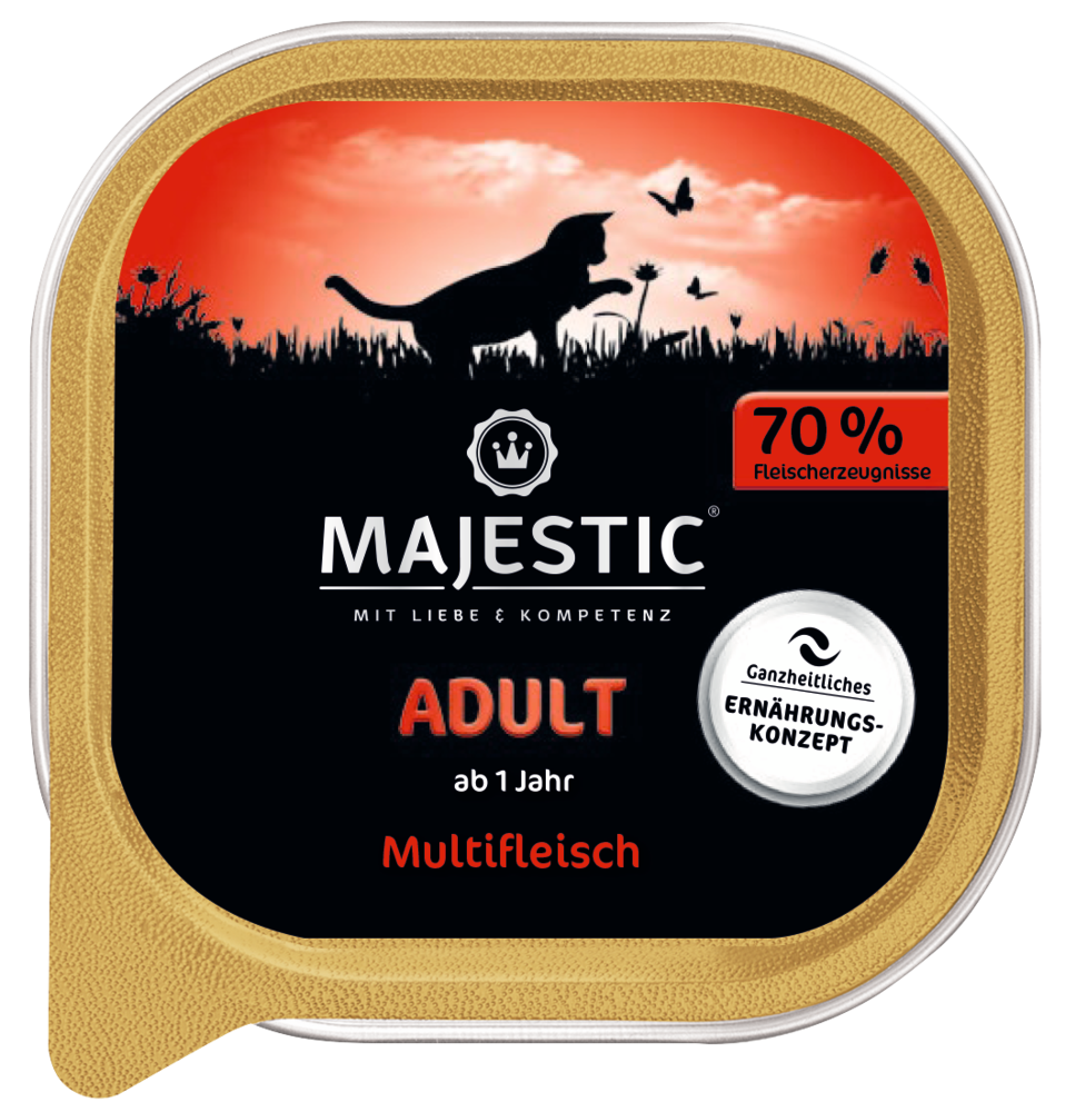 MAJESTIC ist eine vollwertige Hauptmahlzeit mit 70% Fleischerzeugnissen.
