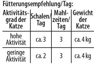 Schalen / Tag | Mahlzeiten / Tag | Gewicht der Katze |