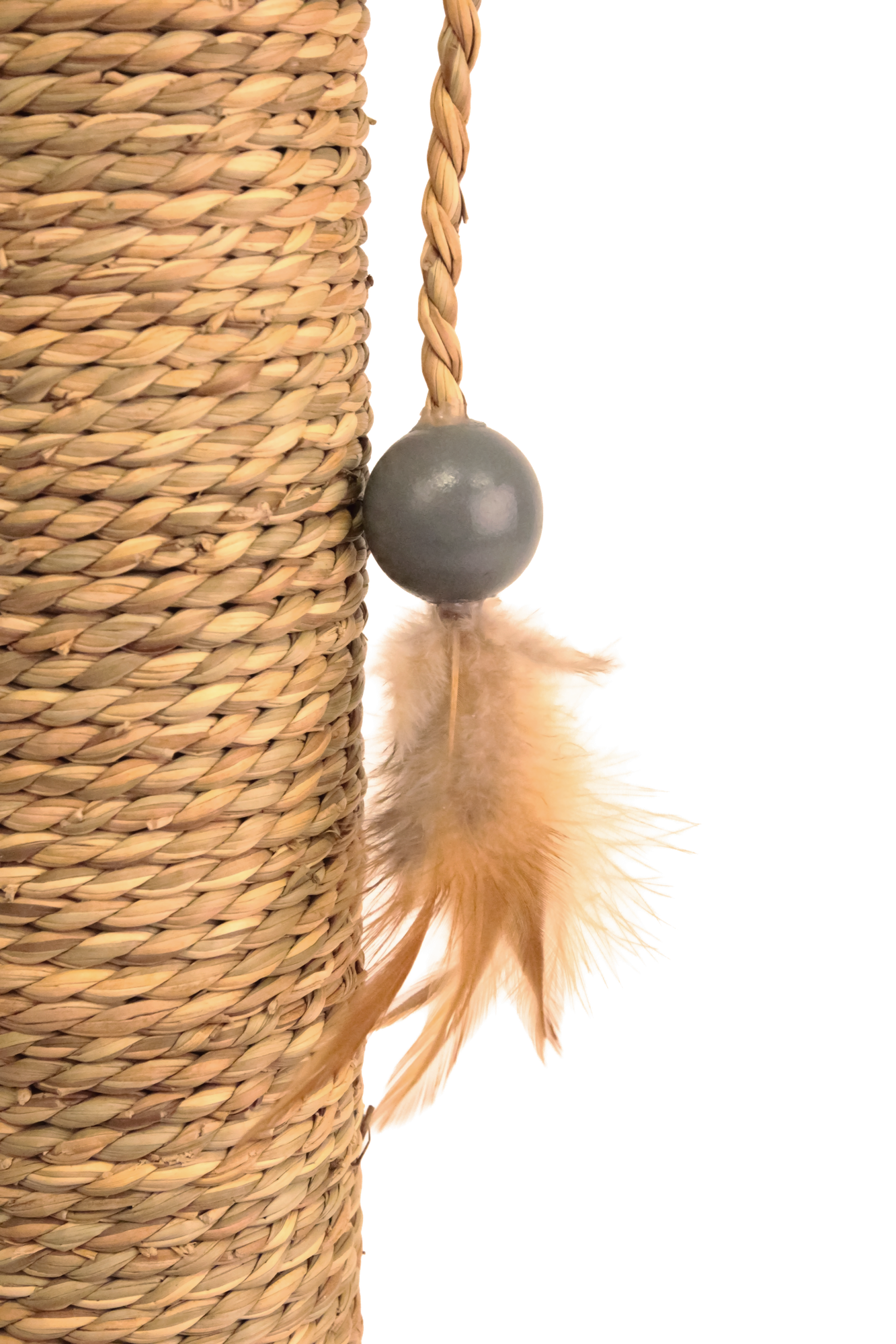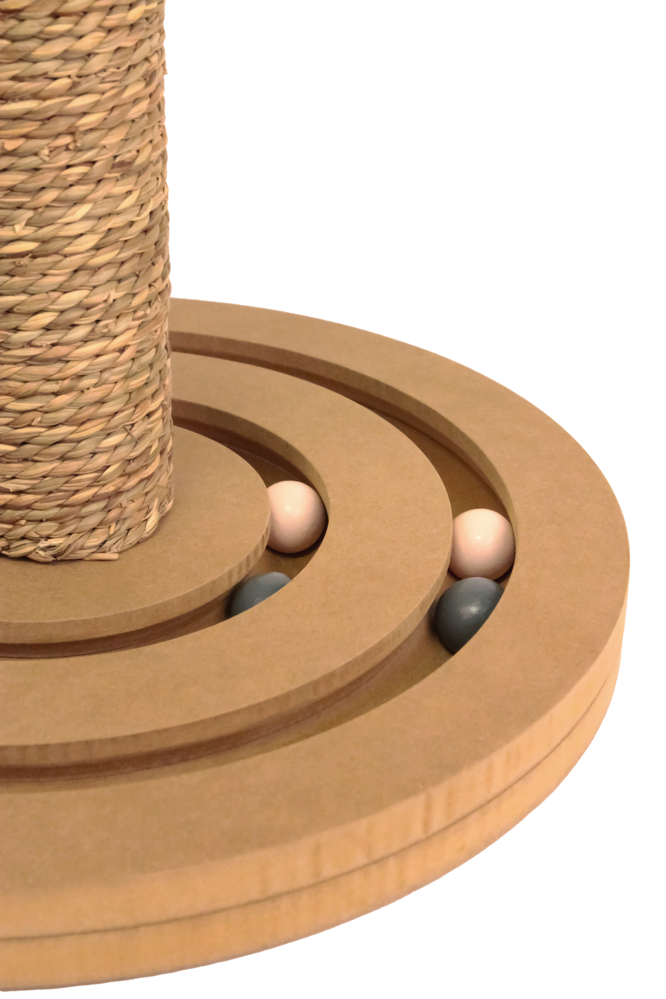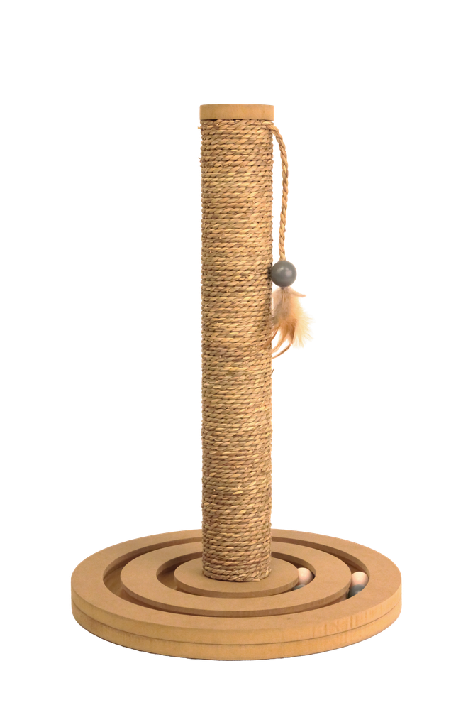 Kratzstamm aus Seegras mit Kugelbahnen und Federspielzeug