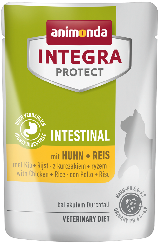 INTEGRA PROTECT Intestinal wurde speziell für Katzen mit akutem Durchfall entwickelt. Hoch verdauliche, tierische Eiweiße und gut verträgliche Kohlenhydrate schonen den Magen-Darm-Trakt. Der erhöhte Elektrolytgehalt gleicht durch Erbrechen und Durchfall entstandene Verluste aus.- bei akutem Durchfall