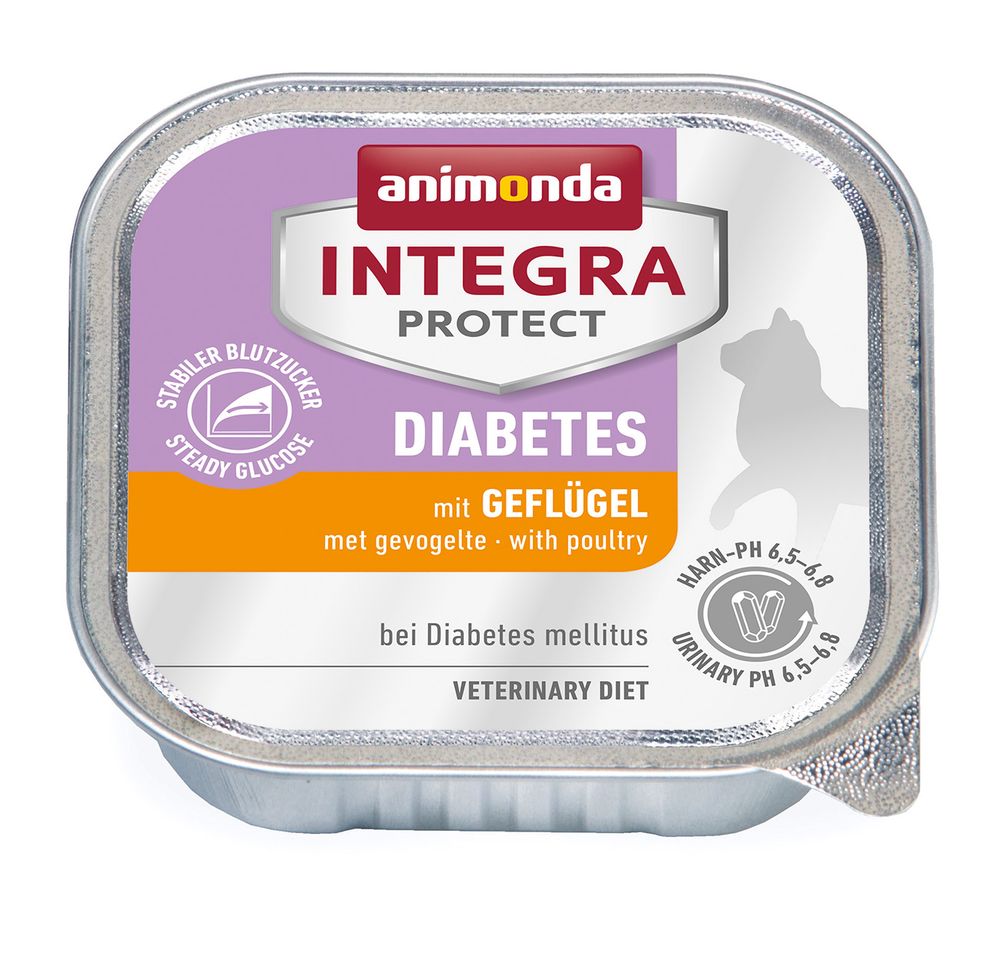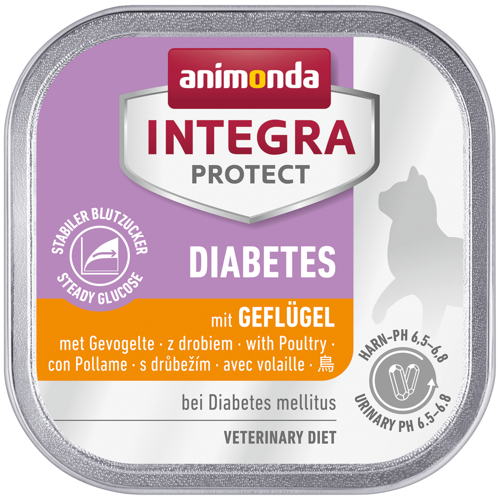 INTEGRA PROTECT Diabetes wurde speziell für zuckerkranke Katzen (Diabetes mellitus) entwickelt. Damit der Blutzuckerspiegel nach der Futteraufnahme möglichst konstant bleibt, sollte die Diätnahrung viel Protein und wenig Kohlenhydrate enthalten. INTEGRA PROTECT Diabetes enthält daher vorwiegend proteinreiche, fleischliche Zutaten, wodurch > 45 % der enthaltenen Energie bereitgestellt werden.- proteinreich