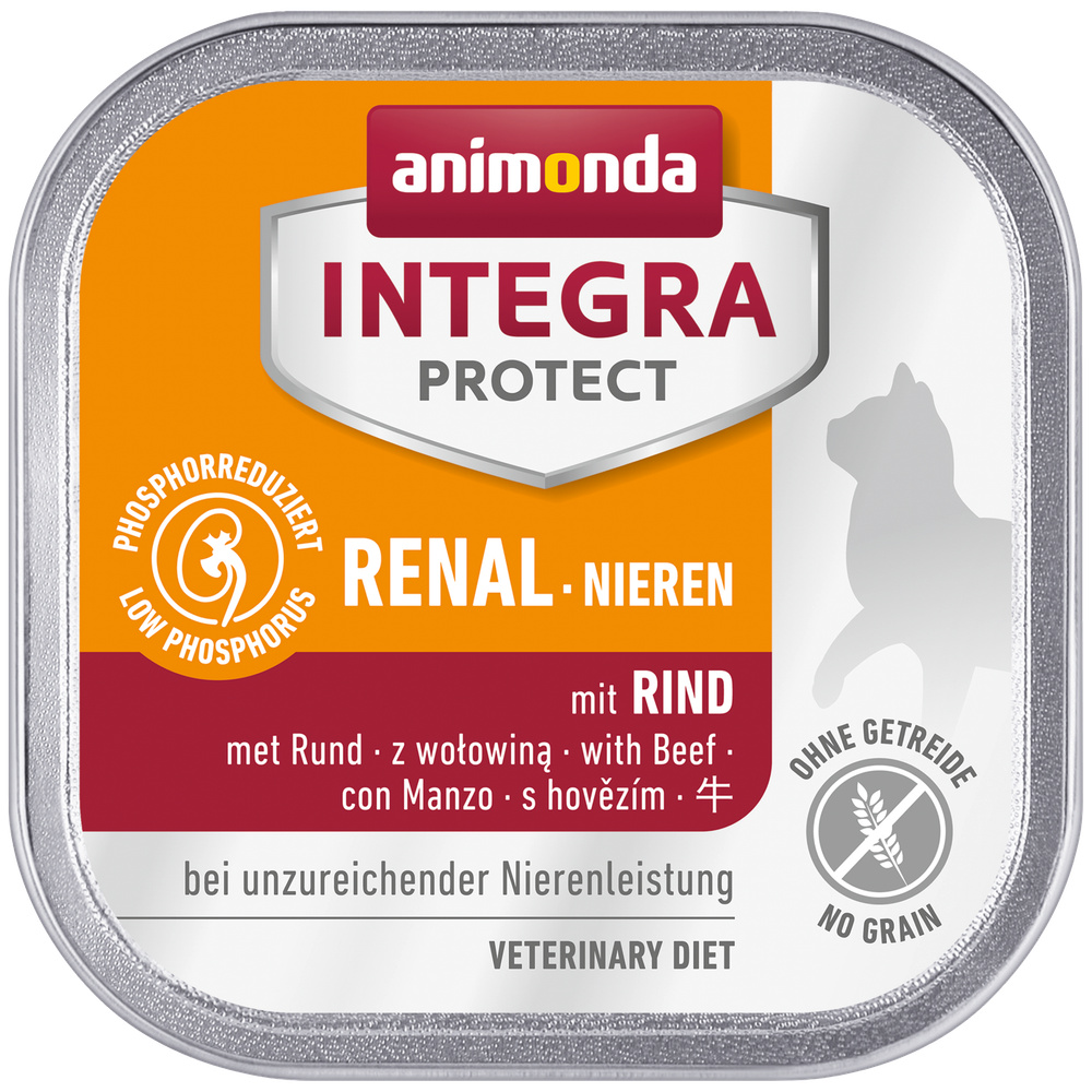 INTEGRA PROTECT Renal wurde speziell für Katzen mit chronischer Niereninsuffizienz entwickelt. Die deutlich geringere Zufuhr von Eiweißen verringert die auszuscheidene Menge an Eiweißabbauprodukten. Die gleichzeitige Reduzierung des Phosphorgehaltes verzögert den fortschreitenden Verlust der Nierenfunktion. Dadurch verbessert sich das Befinden der Katze nachhaltig und die Lebenserwartung kann verlängert werden.- phosphorreduziert