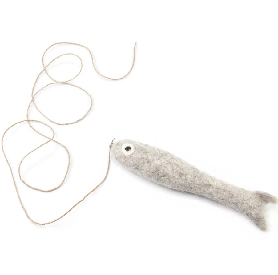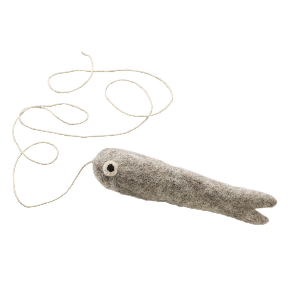 Der handgefilzte Fisch aus Merinowolle weckt den natürlichen Jagdinstinkt deiner Katze. Durch die integrierte Schnur wird daraus ein aktives Angelspiel, das für stundenlangen Spielspaß sorgen kann. Gefertigt in Deutschland und aus natürlichen Materialien hergestellt – ein Spielzeug für Katzen, die Bewegung und Abwechslung lieben.