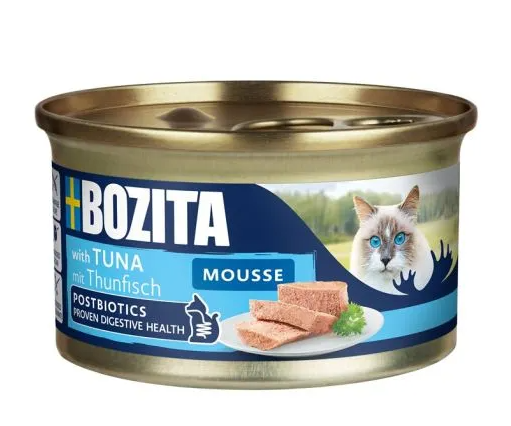 Bozita Mousse mit MSC-Thunfisch ist eine cremige und köstliche Mahlzeit für ausgewachsene Katzen, hergestellt aus natürlichen Zutaten und sorgfältig ausgewogenen Nährstoffen. Jede Dose ist ein Alleinfuttermittel, frei von Getreide, ohne Zuckerzusatz und ohne künstliche Farbstoffe. Das cremige Mousse ist selbst für die wählerischsten Katzen unwiderstehlich. Bozita Mousse enthält Postbiotika, die eine ausgewogene Darmflora und ein starkes Immunsystem unterstützen. Es hilft dem Körper, schädliche Mikroorganismen zu erkennen und zu bekämpfen, trägt zur Geruchsreduzierung des Stuhls bei und unterstützt die Beweglichkeit, Vitalität und ein aktives Leben.Tierart: Katze