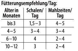 Diese Angaben sind Richtwerte. Der tatsächliche Bedarf richtet sich nach Alter, Rasse und Aktivität Ihres Kätzchens. Bitte immer ausreichend frisches Wasser zur Verfügung stellen.