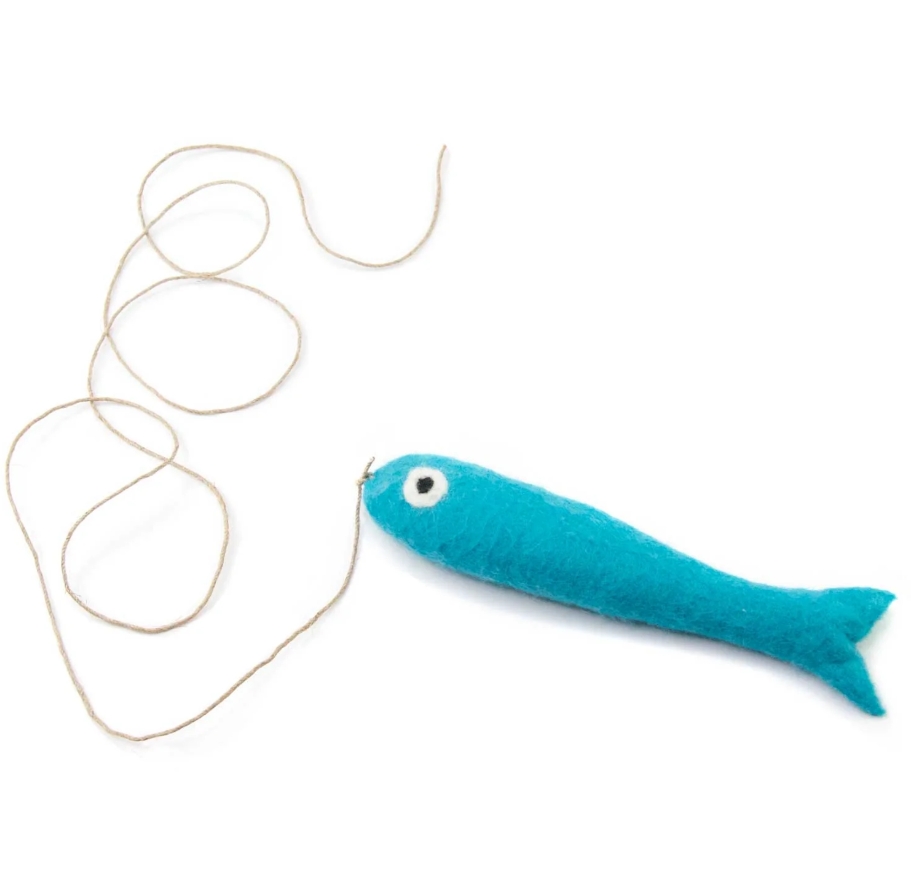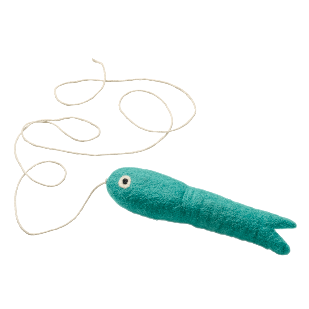 Der handgefilzte Fisch aus Merinowolle weckt den natürlichen Jagdinstinkt deiner Katze. Durch die integrierte Schnur wird daraus ein aktives Angelspiel, das für stundenlangen Spielspaß sorgen kann. Gefertigt in Deutschland und aus natürlichen Materialien hergestellt – ein Spielzeug für Katzen, die Bewegung und Abwechslung lieben.