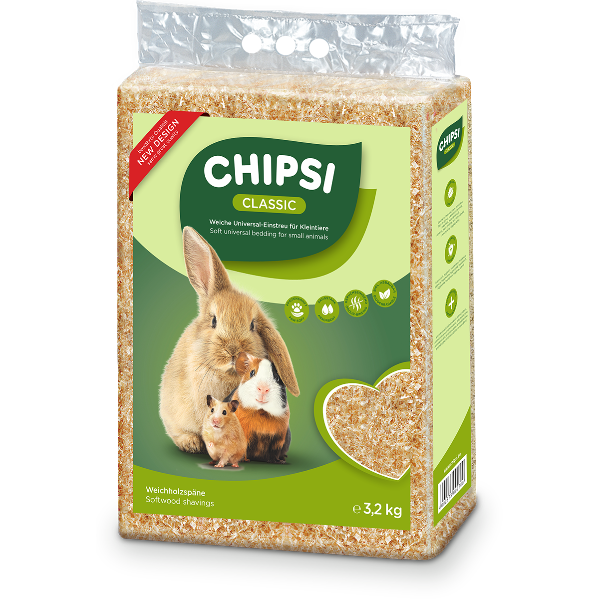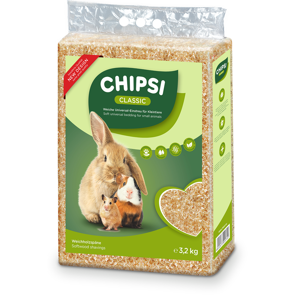 Millionenfach bewährt! Viele Tierhalter schwören darauf, denn ihre Haustiere lieben sie. In CHIPSI CLASSIC fühlt sich das Tier wie draußen in der Natur! Die entstaubten Weichholzspäne, die von Fichten und Tannen von hier stammen, sind natürlich saugstark, sorgen für einen guten Geruch und eine saubere - für Deinen kleinen Liebling so richtig angenehm natürliche - Behausung.- hygienisch