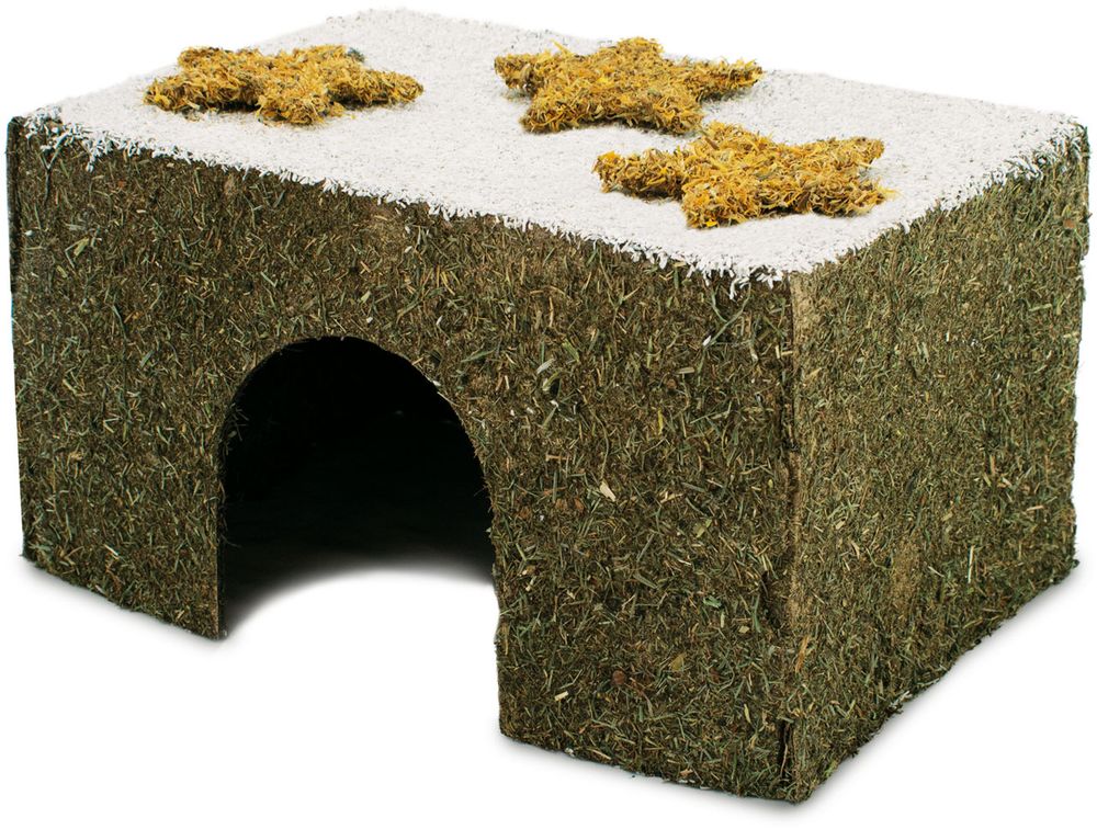 Das Winter-Heu-Haus ist umhüllt mit einer Mischung aus aromatischem Bergwiesenheu aus eigenem Anbau und einem Dach