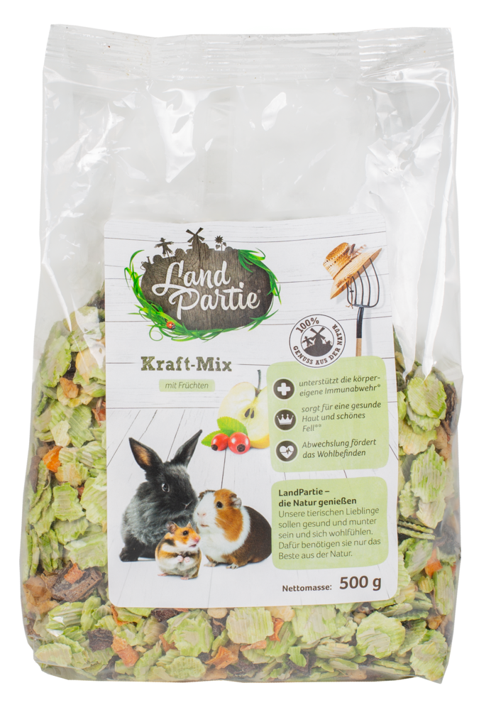 LandPartie Kraft-Mix mit Gemüse stets ergänzend zum Hauptfutter anbieten. Erneuern Sie täglich das Futter und versorgen Sie Ihren Liebling mit ausreichend frischem Trinkwasser. Produkt trocken und dunkel lagern.