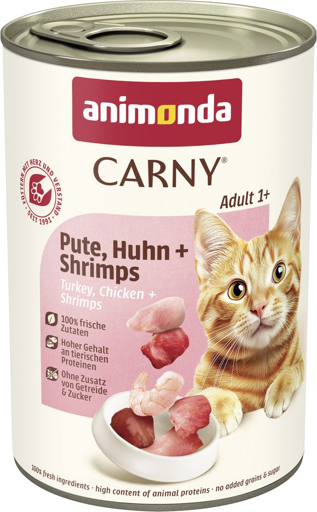 ( 1 )animonda CARNY mit Huhn, Pute und Entenherzen für Katzen 6 x 400 gOnline verfügbar14,34 € (je kg = 5,98 €) -