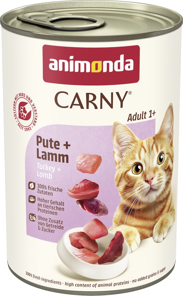 Carny Adult Pute + Lamm ist perfekt auf die Bedürfnisse ausgewachsener Katzen im Alter von 1 bis 6 Jahren abgestimmt.