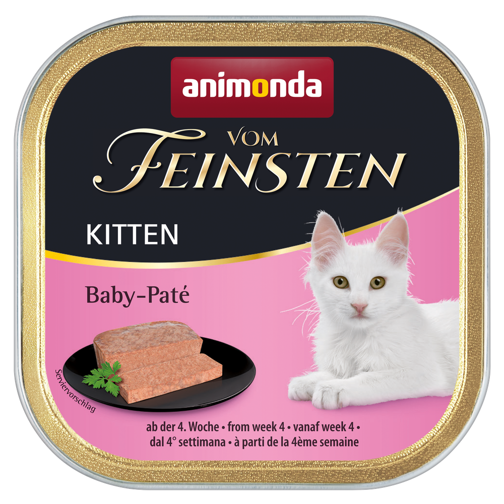 Katzenbabys haben besondere Ansprüche an Ihre Ernährung. Aber auch das kräftigste Muttertier kann ihr Baby mit ihrer Milch kaum länger als 4 Wochen ausreichend mit Energie und Nährstoffen versorgen. Genau da setzt animonda Vom Feinsten Kitten Baby-Paté an. animonda Vom Feinsten Baby-Paté ist für unsere jüngsten Kitten ab der 4. Lebenswoche bestimmt. Die zarte, fein-cremige Konsistenz hilft beim Übergang von der flüssigen Muttermilch zur festen Nahrung.
