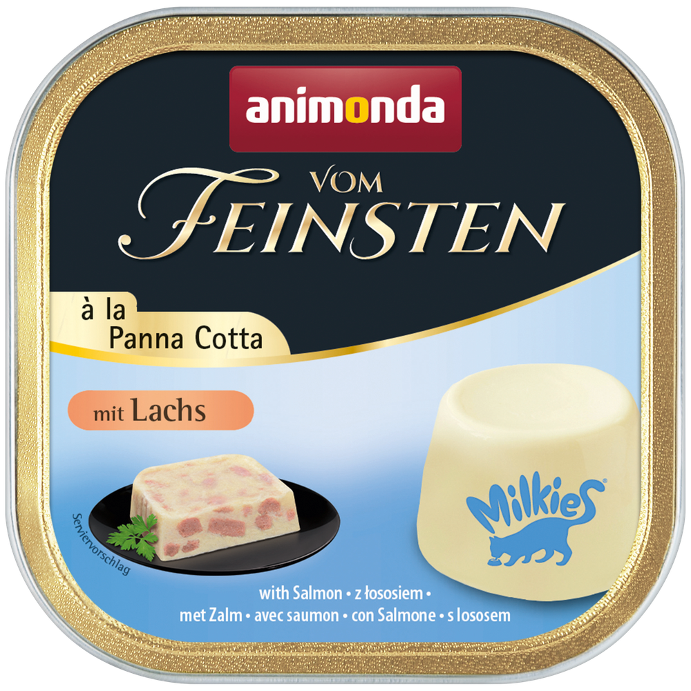 Vom Feinsten Adult à la Panna Cotta mit Lachs steht für ausgewogene, leckere gesunde Ernährung auf höchstem Niveau für ausgewachsene Katzen von 1 - 6 Jahren. Katzen lieben Milch, und die Qualität der fischigen Zutaten kombiniert mit einem leckeren milchigen Gelee à la Panna-Cotta garantieren einen einzigartigen Genuss. Die ausgewachsene Katze wird zudem mit allen lebenswichtigen Nährstoffen versorgt.- einzigartiger Genuss
