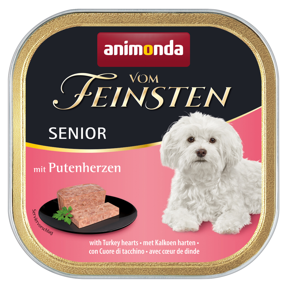 Die Vom Feinsten Senior Pastete mit Putenherzen lässt auch ältere Hundeherzen höherschlagen.Diese fein-stückige Pastete überzeugt anspruchsvolle Senior-Hunde mit leckeren, ausgewählten fleischlichen Zutaten – ohne Getreide und Soja.