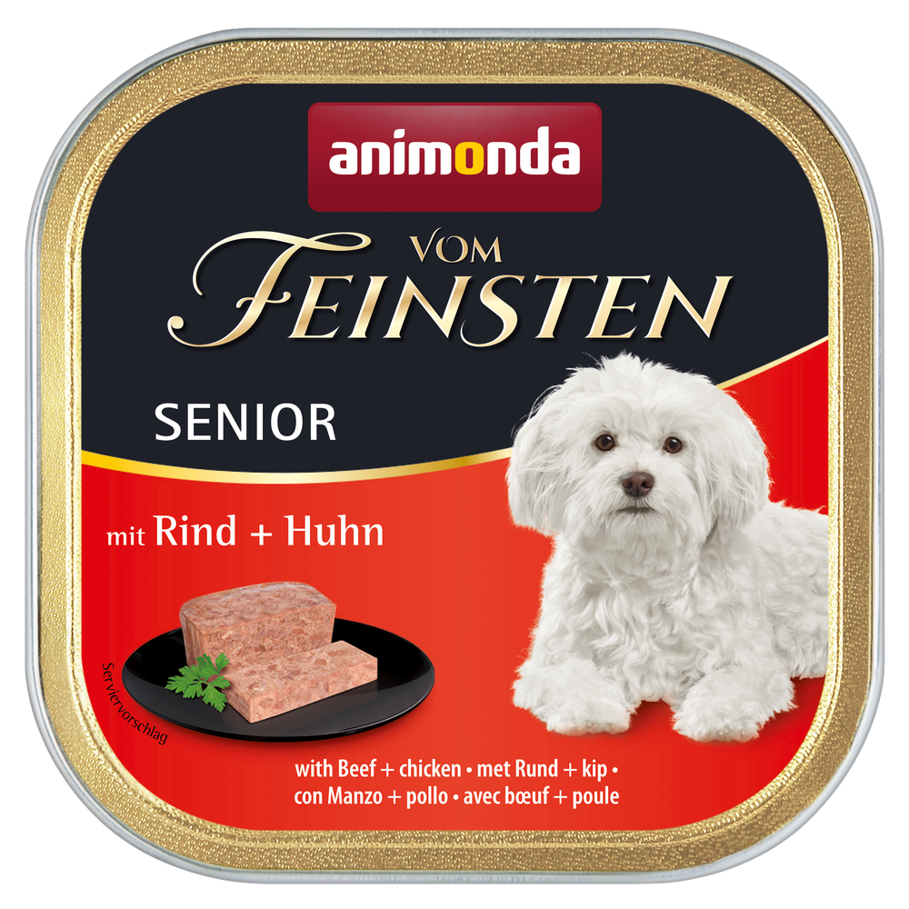 Einzigartiger Genuss für ältere Hunde: Vom Feinsten Senior Pastete mit Rind + Huhn begeistert wählerische Senior-Hunde mit zarter Konsistenz und ausgewählten fleischlichen Zutaten.Dieses köstliche Nassfutter versorgt den älteren Hund ab 7 Jahren mit allen lebenswichtigen Nährstoffen