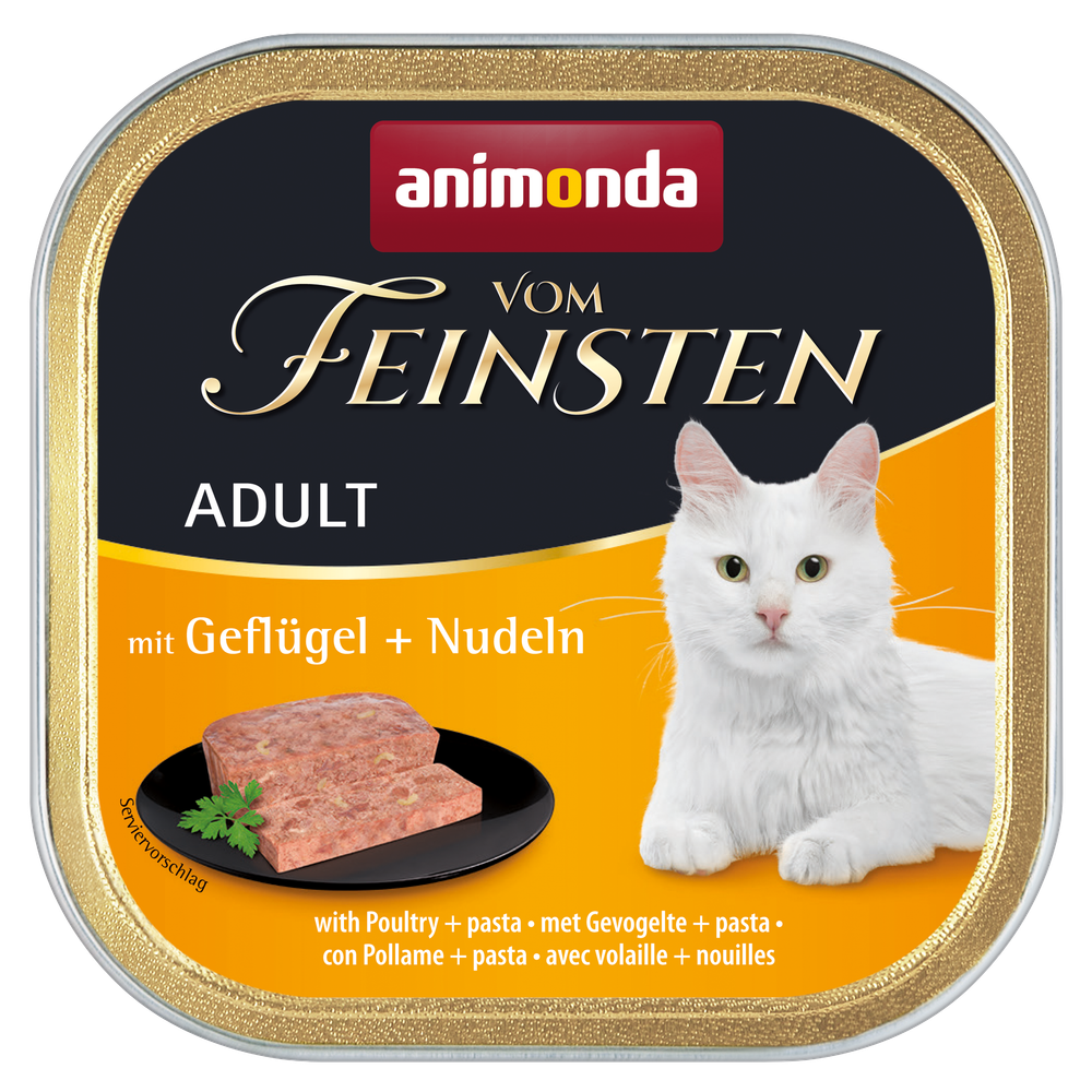 Ausgewachsene Katzen lieben Abwechselung in ihrem Napf. "animonda vom Feinsten Adult" gibt es daher in neun fein-fleischigen Varietäten. Für die tägliche Versorgung mit allen lebenswichtigen Nährstoffen.- mit viel Fleisch