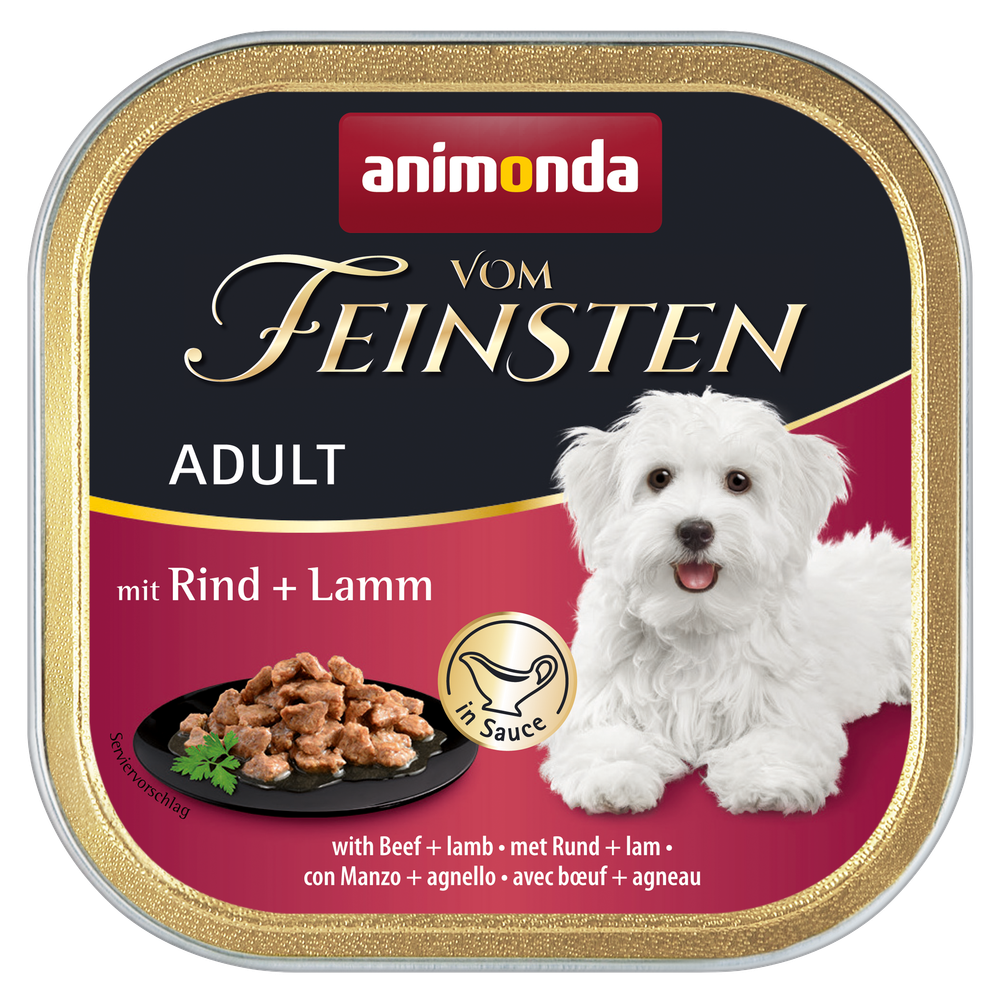 Wählerische Hunde lieben Futter, das sie überrascht. Vom Feinsten Adult mit Rind und Lamm in Sauce verwöhnt Vierbeinermit einer leckeren Sauce, die bis auf den letzten Rest aufgeschleckt wird, und Stückchen, die für zarten Biss sorgen.
