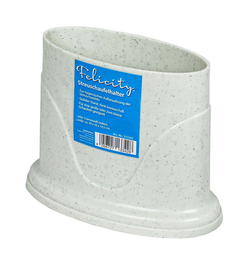 - Streuschaufelhalter mit stabilem Stand, dank breitem Fuß