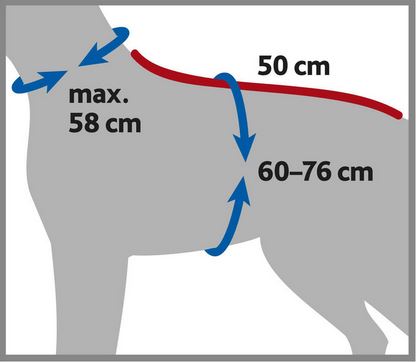 - Maße: Bauchumfang 60-76 cm, Rückenlänge 50 cm