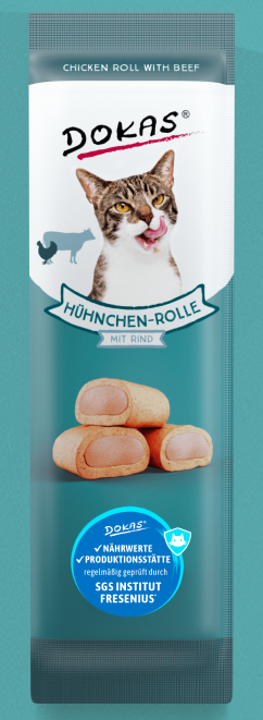 DOKAS HÜHNCHEN-ROLLE mit Rind für Katzen 32 x 10 g