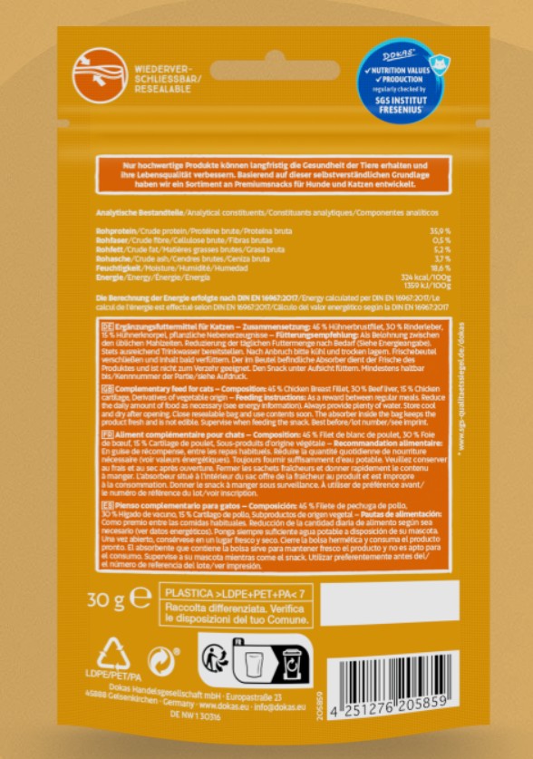Inverkehrbringer: Dokas Handelsgesellschaft mbH, Eurpastraße 23, 45141 Essen; E-Mail: info@dokas.eu