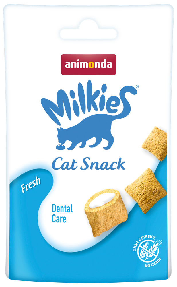 Einfach besser snacken: Die neuen Milkies Fresh Knusperkissen sind nicht nur knackig und lecker, sie helfen auch mit, das Entstehen von Zahnstein bei Ihrer Katze zu verhindern. Die getreidefreie Knusperkissen mit weniger als 1,5 kcal pro Stück und dem Dental-Care-EffektInverkehrbringer: animonda Petcare gmbh, Frankfurter Str. 31, 49214 Bad Rothenfelde, E-Mail: info@animonda.de