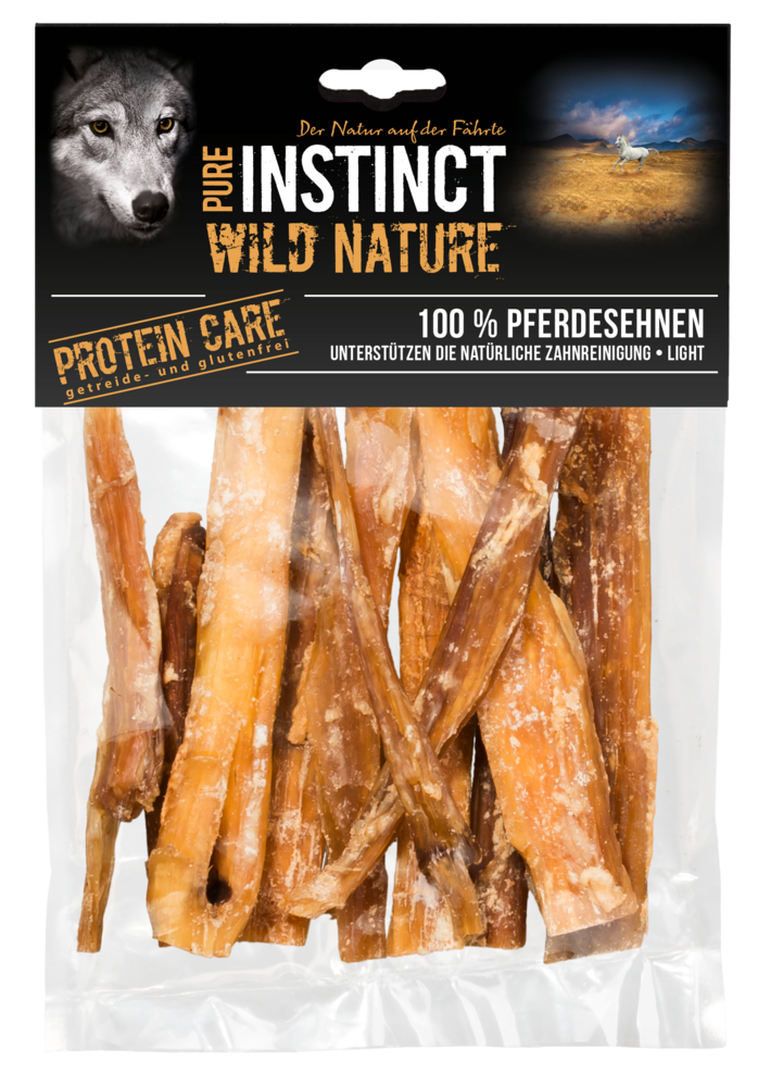 Die PURE INSTINCT Pferdesnacks sind naturbelassen, wurden schonend verarbeitet und sind auch für empfindliche Hunde und Tiere mit Allergien und Futtermittelunverträglichkeiten gut geeignet. Pferdesehnen unterstützen die natürliche Reinigung der Zähne und bieten langes Kauvergnügen.