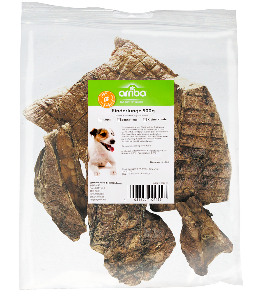 Mit diesem natürlichen Snack bieten sie ihrem Hund lang anhaltenden Kauspaß.Rinderlungen sind zudem leicht verdaulich und enthalten wenig Fett und sind somit auch bestens geeignet für empfindliche Hunde.