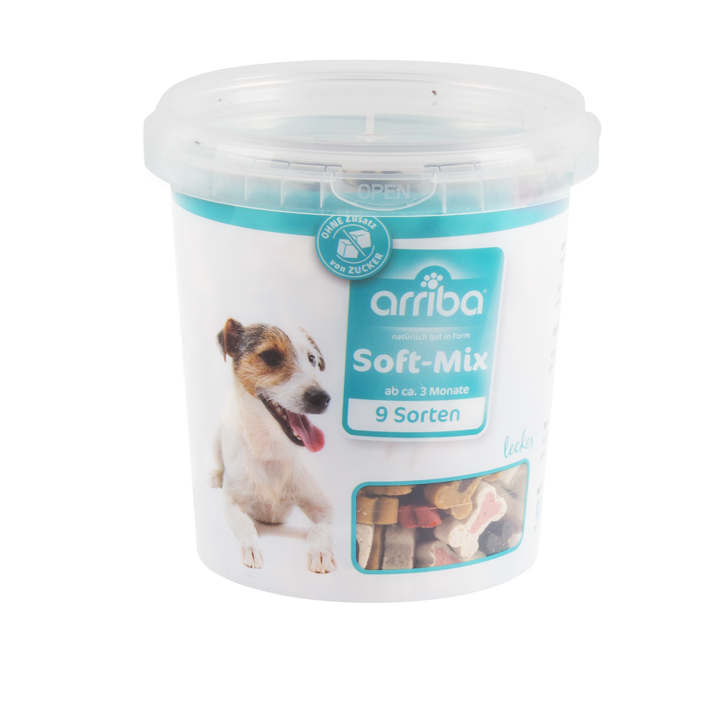 Dazu gehören auch die kleinen, weichen arriba-Snacks als Belohnung für Zwischendurch oder zum Training. Snacks sind nicht als Alleinfuttermittel geeignet.