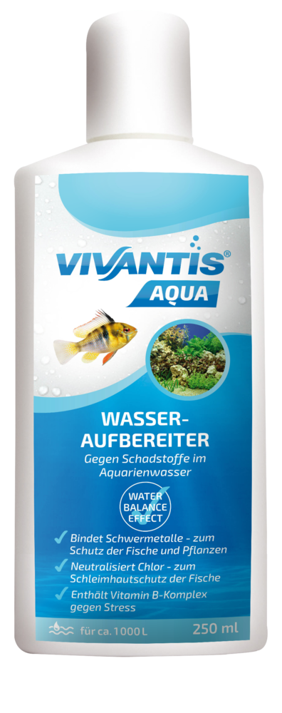 VIVANTIS Wasseraufbereiter bindet Schadstoffe im Leitungswasser und wird bei jedem Wasserwechsel und bei Neueinrichtungen angewendet. Durch die regelmäßige Anwendung sind die Schleimhäute der Fische optimal geschützt. Schädliches Chlor und Schwermetalle im Leitungswasser werden gebunden. Der Vitamin B-Komplex reduziert die Stressanfälligkeit aller Aquarienbewohner. Für das biologische Gleichgewicht wichtige Mikroorganismen werden aktiv unterstützt. Eine optimale Wirkung wird mit der kombinierten Anwendung von VIVANTIS Reinigungsbakterien erzielt.