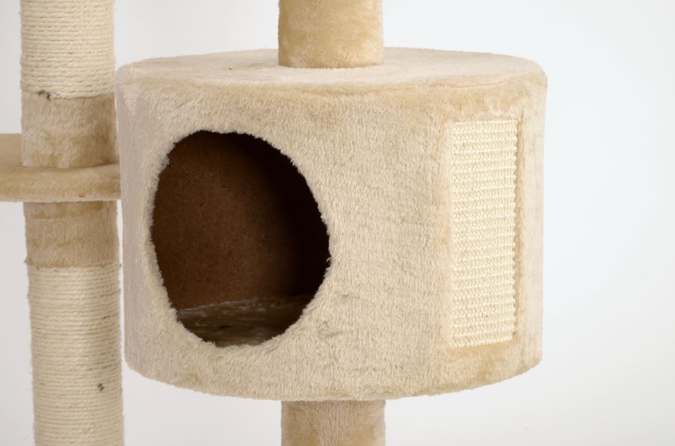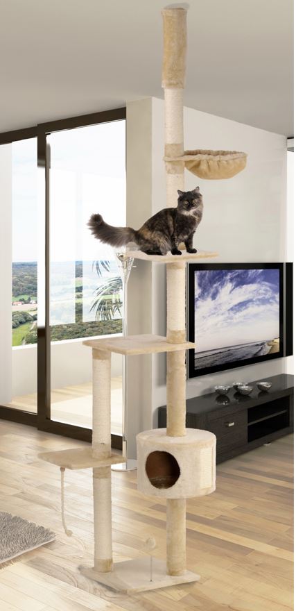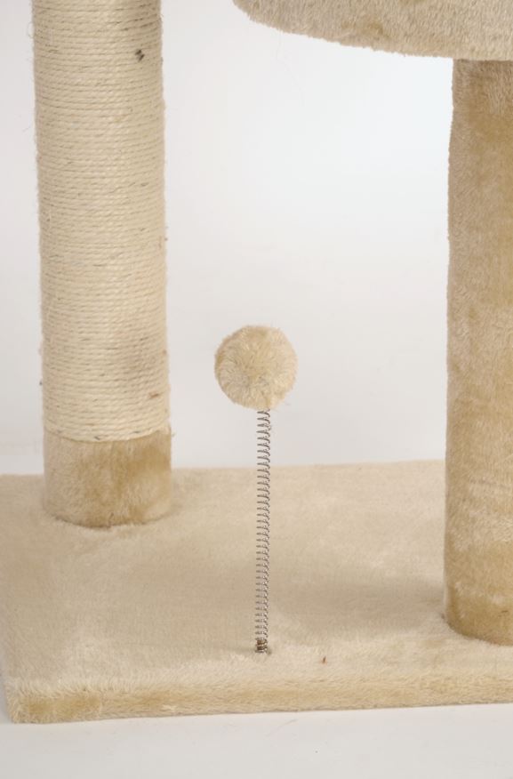 - Integrierte Spielmöglichkeiten wie Federspielkugel und Spielseil