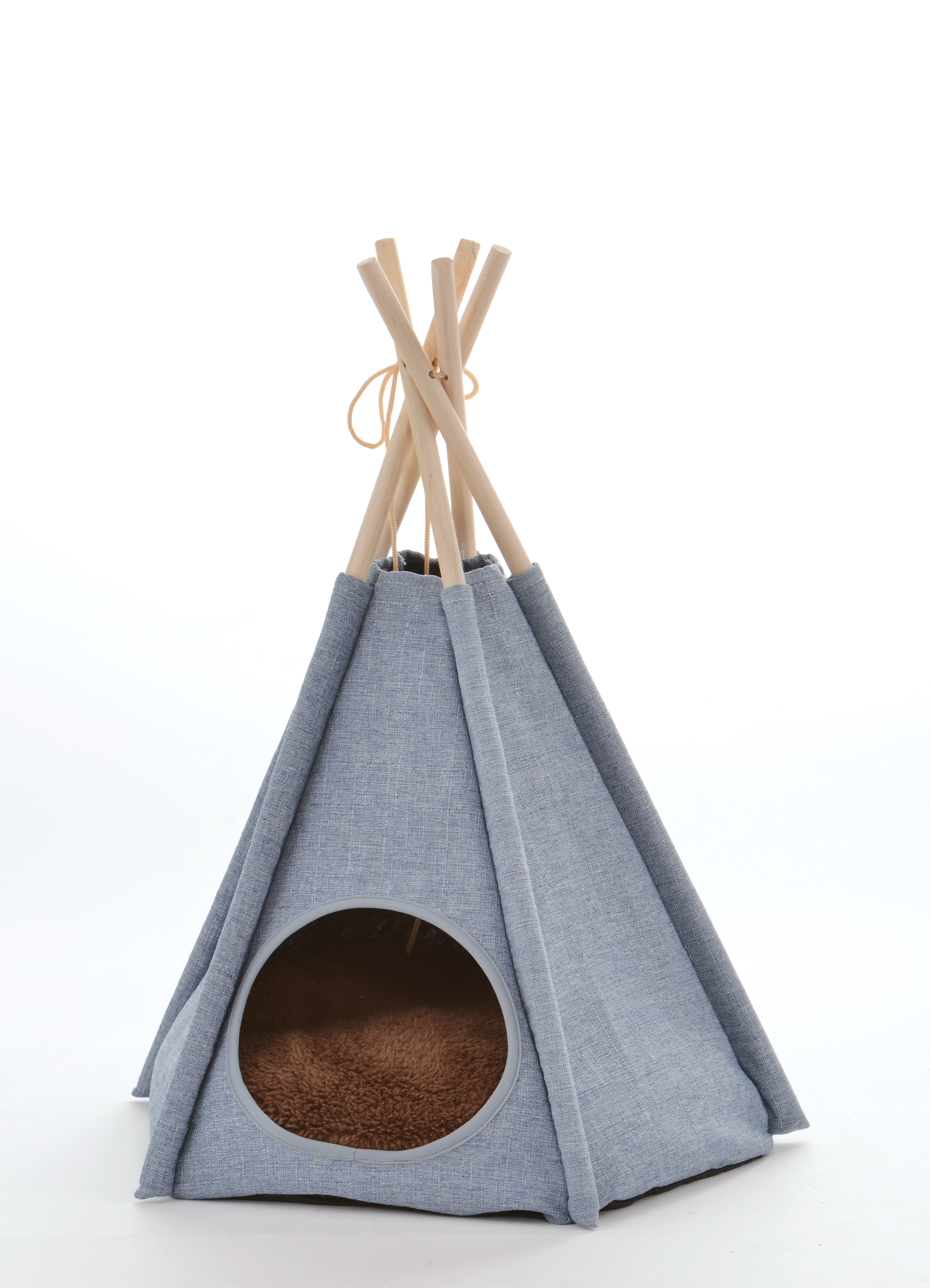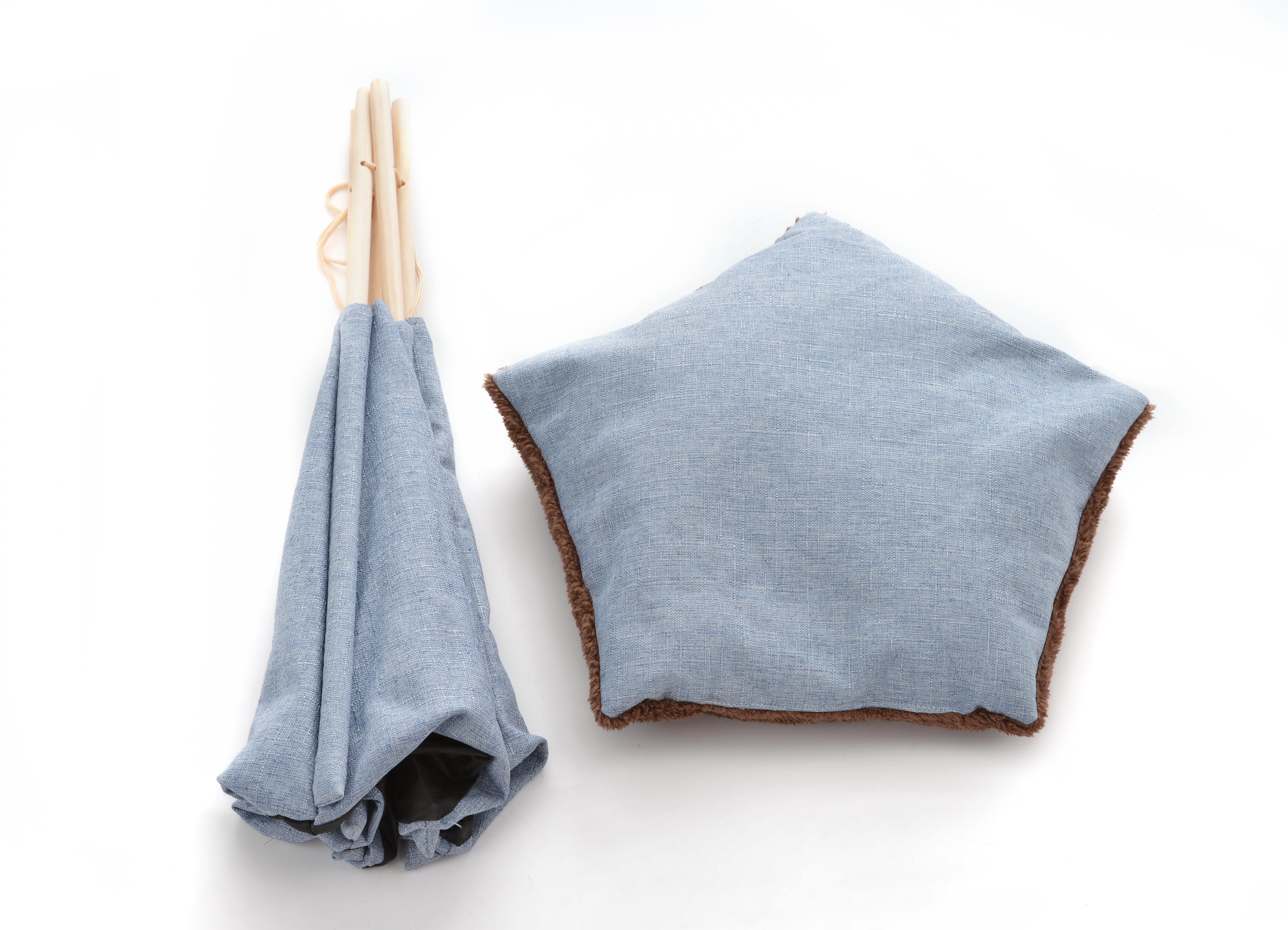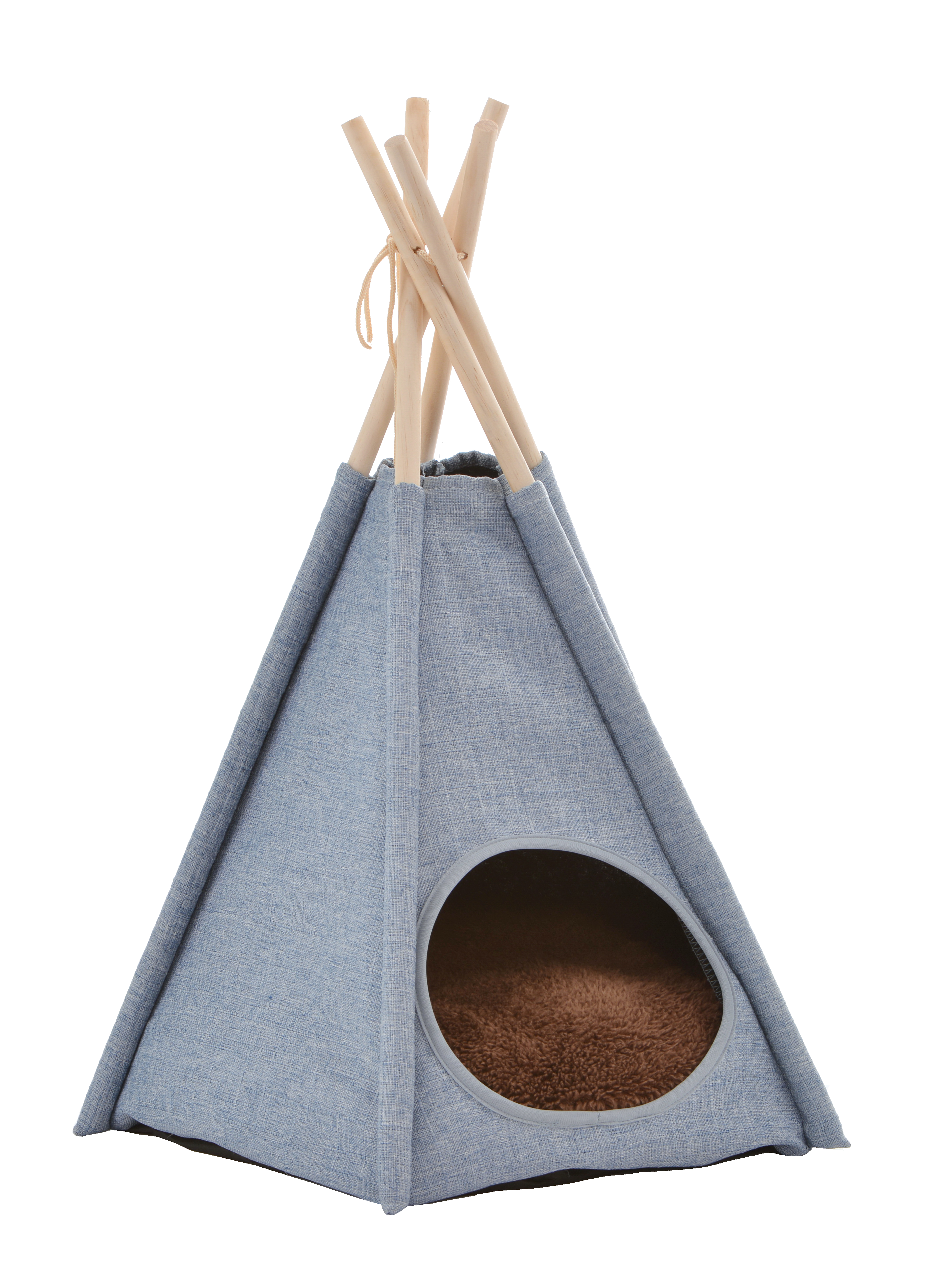 Die Tipi-Katzenhöhle bietet deiner Katze einen komfortablen Rückzugsort zum Kuscheln, Verstecken und Entspannen. Das weiche Wendekissen (eine Seite Plüsch, eine Seite Jeans-Optik) ist bei 30 °C waschbar. Dank der platzsparenden, zusammenlegbaren Fünfeck-Form mit fünf Holzstäben lässt sich die Höhle auch auf Reisen leicht transportieren.Tierart: Katze
