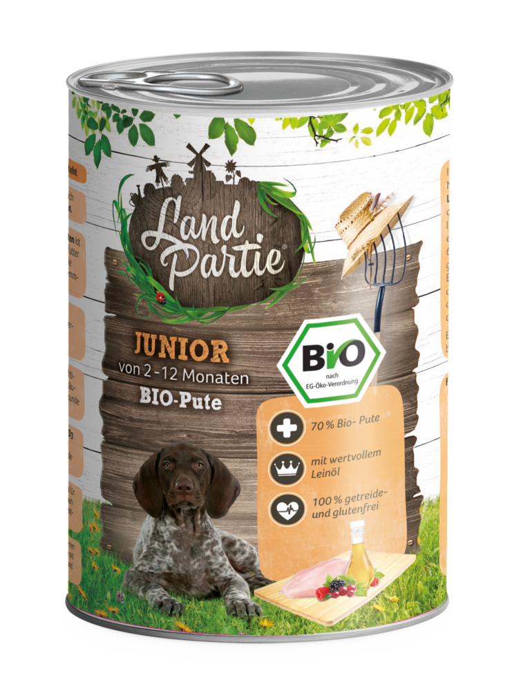 Unsere Philosophie:LandPartie Bio steht für frische und schonende Verarbeitung der Rohstoffe in bio-zertifizierten Betrieben in Deutschland, sowie eine naturnahe, artgemäße Ernährung mit essentiellen Zutaten, wie z.B. Vitamine, Spurenelemente und Mineralstoffe, die den von der Natur vorgegebenen Bedürfnissen entspricht. LandPartie wird ausschließlich in Deutschland, in zertifizierten Betrieben mit höchsten Qualitätsstandards produziert.