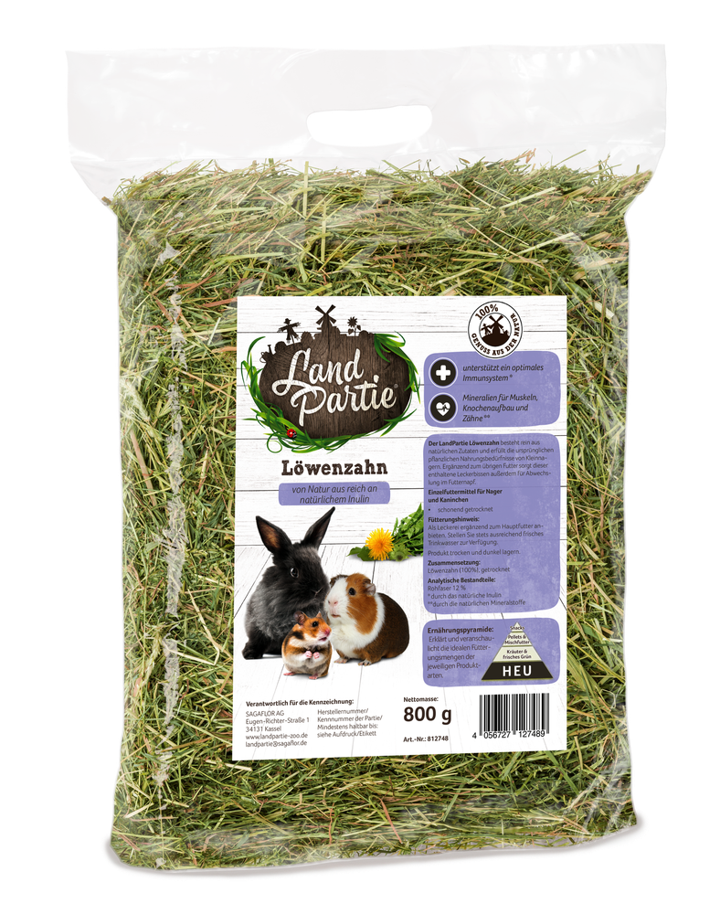 Der Landpartie Löwenzahn besteht aus natürlichen Zutatenund erfüllt die ursprünglichen pflanzlichen Nahrungsbedürfnisse von Kleinnagern.